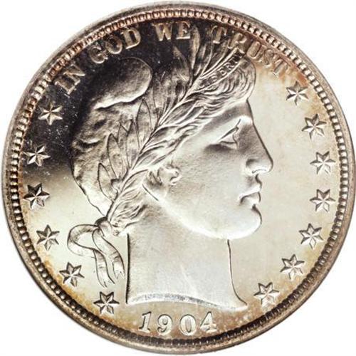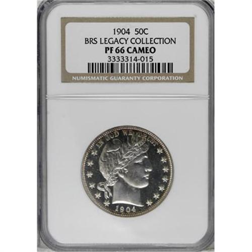 <B>1904 50C PR66 Cameo NGC.</B></I> Ex: BRS Legacy Collection. While proofs are several times more available than high grade business strikes, examples in PR66 and with cameo contrast are rarely encountered. This is a dazzling proof with mostly brilliant surfaces that show toning only around the margins. Nicely contrasted on each side and immaculately preserved. Census: 3 in 66, 7 finer (11/07).<BR><BR><b>Shipping:</b> Coins & Currency (<a target="_blank" href="http://www.heritageauctions.com/common/shipping.php">view shipping information</a>)