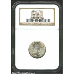 1904 5C MS65 NGC. A lustrous, well-struck Gem that has claims to a higher grade. Light golden irides