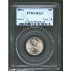 1904 5C MS65 PCGS. A well struck and carefully conserved Gem, with lovely light color and dazzling c