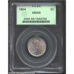 1904 5C MS66 PCGS. Light golden-brown patina enriches the peripheries, while the centers are endowed
