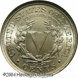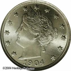 1904 5C MS67 NGC. A splendidly preserved and fully <B>1904 5C MS67 NGC.</B></I> A splendidly preserved and fully brilliant Superb Gem that possesses unimprovably bright cartwheel luster. Not fully struck, but otherwise exemplary. A wonderful example for the specialist who seeks only the finest. Population: 3 in 67, 0 finer (11/04). <BR><BR><B>Important notice:</B> Heritage usually auctions material at the rate of 200-250 lots per hour. On some occasions eBay Live bid software or the Internet may not be able to keep up with the pace of the auction. We recommend placing a realistic absentee bid now as insurance to avoid disappointment. Occasionally the auctioneer may eliminate or reject an eBay Live bid, and the auctioneer may also reopen a lot after the close of the eBay live bidding (usually because we missed an audience bid), and may reject your bid even if it shows you as the winning bidder. By bidding via eBay Live, you agree that Heritage may award the lot to another bidder at its sole discretion under the circumstances described above or any other reasonable circumstances. Since eBay bids are not shown to us until we open the lot on the floor, we treat those bids just like floor bids. In most cases the floor responds before the eBay bid is presented to us, due to Internet lag time, so for consistency we have made it a policy that floor bids are always considered first over tie eBay live bids. Also please note that all Heritage lots purchased through eBay Live carry a 20% Buyer's Premium. Please make sure you read the Terms and Conditions before you bid. This lot is being auctioned in conjunction with a live floor auction by Heritage Galleries & Auctioneers. All final auction and invoice information will be supplied by Heritage Galleries & Auctioneers, and all other information should be considered preliminary. Lot:5532