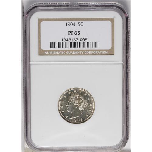 <B>1904<5C> PR65 NGC.</B></I> Bright and highly reflective with light golden toning and a lovely clean appearance. The striking details are exceptional, with complete star centrils on the obverse and full definition on the reverse left ear of corn. Free of hairlines or contact marks. Census: 95 in 65, 45 finer (7/06).