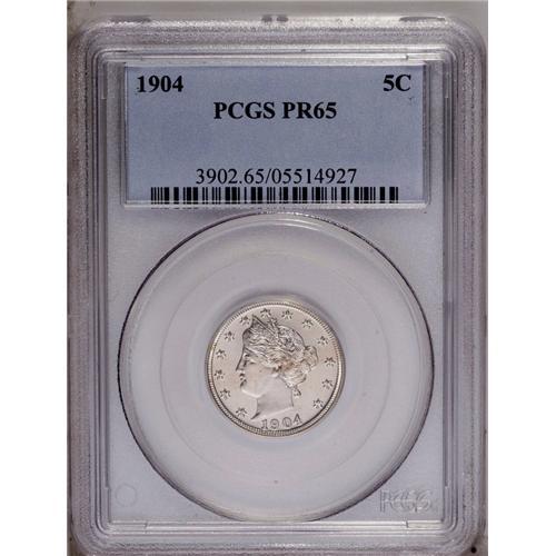 <B>1904<5C> PR65 PCGS.</B></I> A thin layer of champagne patina overlies luminous surfaces that display a mild cameo-like effect. The design elements are boldly impressed, and the surfaces are devoid of mentionable marks.
