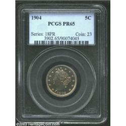 1904 5C PR65 PCGS. Well mirrored beneath apricot and steel-blue patina. Important notice: We expect.