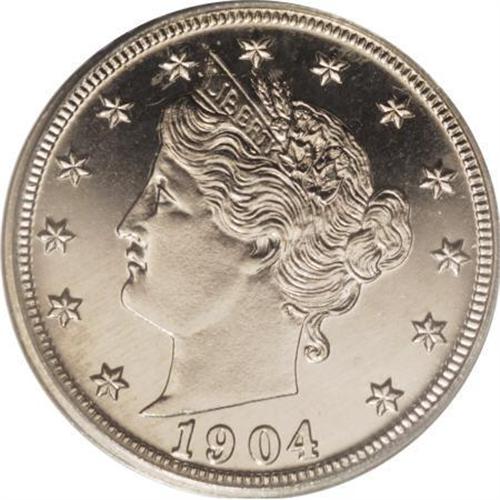 <B>1904 5C PR66 Cameo PCGS.</B></I> Sharp design details and light cameo contrast are evident on this brilliant Premium Gem proof. As an early 20th century proof, the degree of actual contrast is less than seen on later 19th century proofs. This is due to attempts within the Mint to eliminate the "undesirable" cameo appearance. Population: 3 in 66 Cameo, 0 finer (8/07).<BR><BR><b>Shipping:</b> Coins & Currency (<a target="_blank" href="http://www.heritageauctions.com/common/shipping.php">view shipping information</a>)
