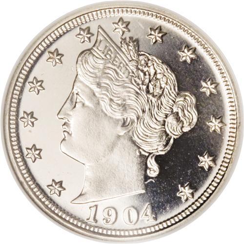 <B>1904 5C PR67 Cameo NGC.</B></I> 1904 nickels with a Cameo finish are few and far between as evidenced by the census/population data, showing NGC and PCGS have certified just nine Cameo examples. The reason for this, as pointed out by David Bowers in his <I>Guide Book of Shield and Liberty Head Nickels,</B></I> is that the portrait and devices were not frosted, following new procedures for making proof dies. He states: "The portrait is in low contrast, reflecting changes at the Mint, which had just recently moved into a new building. ... At this point, 'cameo' pieces were no longer available, a situation that would last for several years." The nine certified Cameos, including the Superb Gem in the present lot, likely resulted from the earliest strikes. Untoned surfaces yield strong contrast between deeply mirrored fields and exquisitely struck, design elements. Both sides are virtually unimprovable. This lovely specimen is tied with two others for the finest certified (4/07).<BR><BR><b>Shipping:</b> Coins & Currency (<a target="_blank" href="http://www.heritageauctions.com/common/shipping.php">view shipping information</a>)