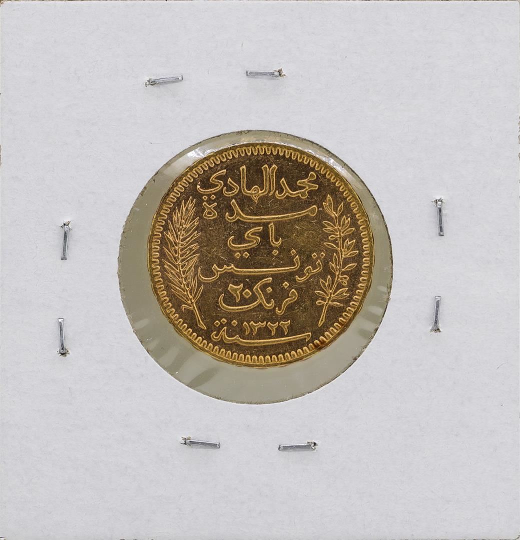One 1904-A Tunisia 20 Francs Gold Coin.