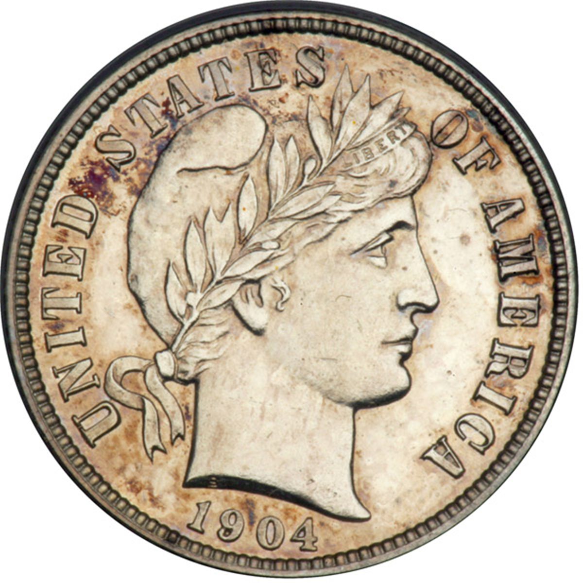 1904 Barber Dime. PCGS graded Proof 63. A brilliant Proof with some areas of tone starting to form. Only 670 Proofs made (PCGS # 4888) .