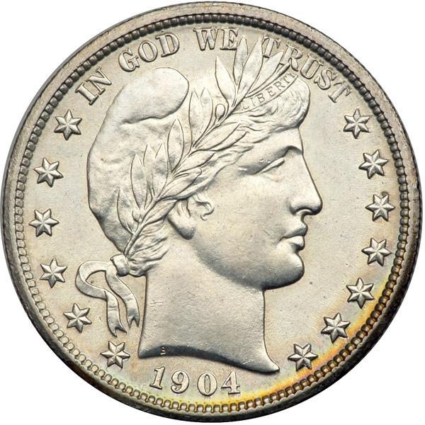 1904 Barber Half Dollar. PCGS Genuine, altered surfaces. Our grade is Sharpness of MS-60+, cleaned (PCGS # 6498) .