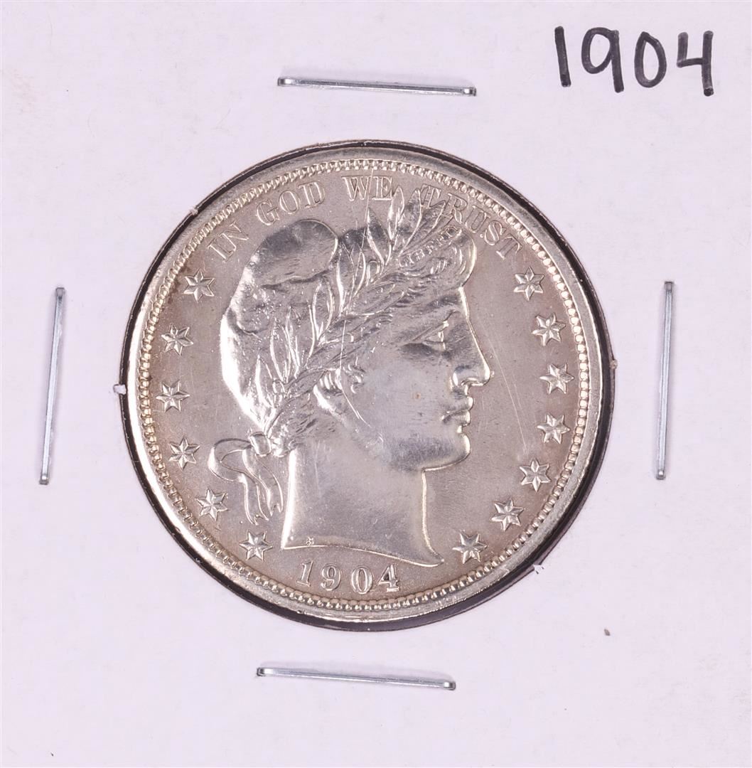 One 1904 Barber Half Dollar Coin.