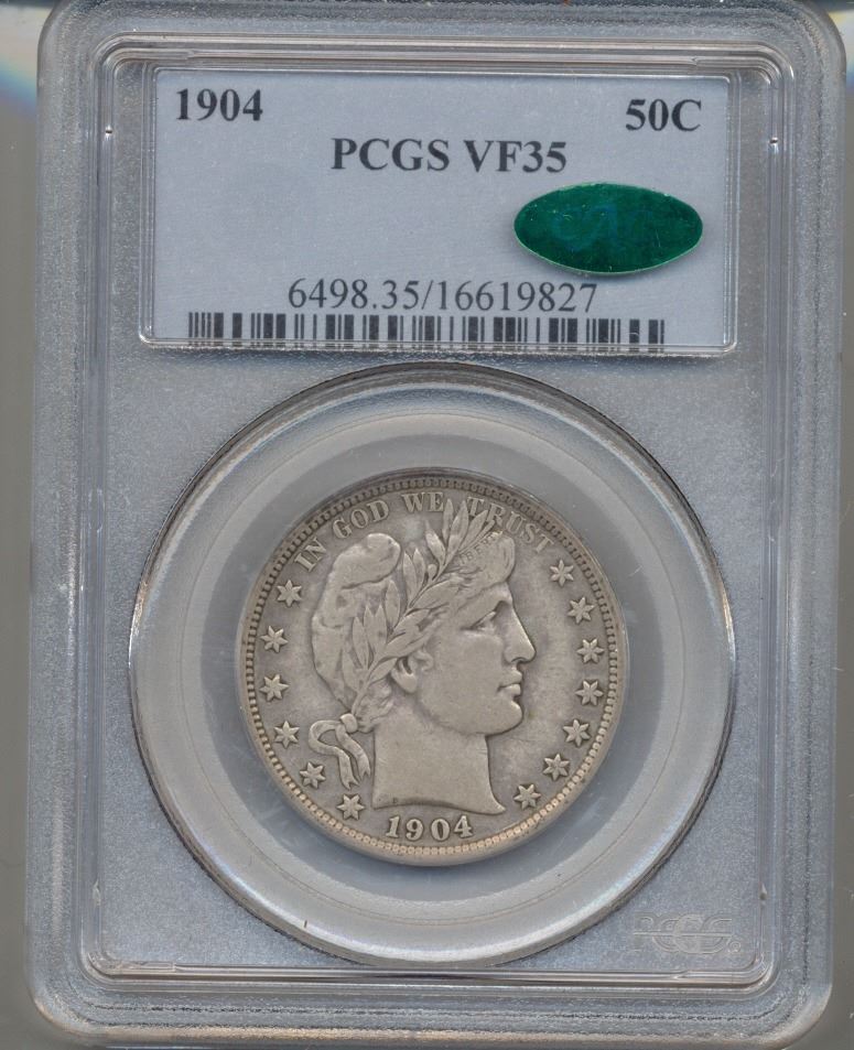 One 1904 Barber Half Dollar PCGS VF35.