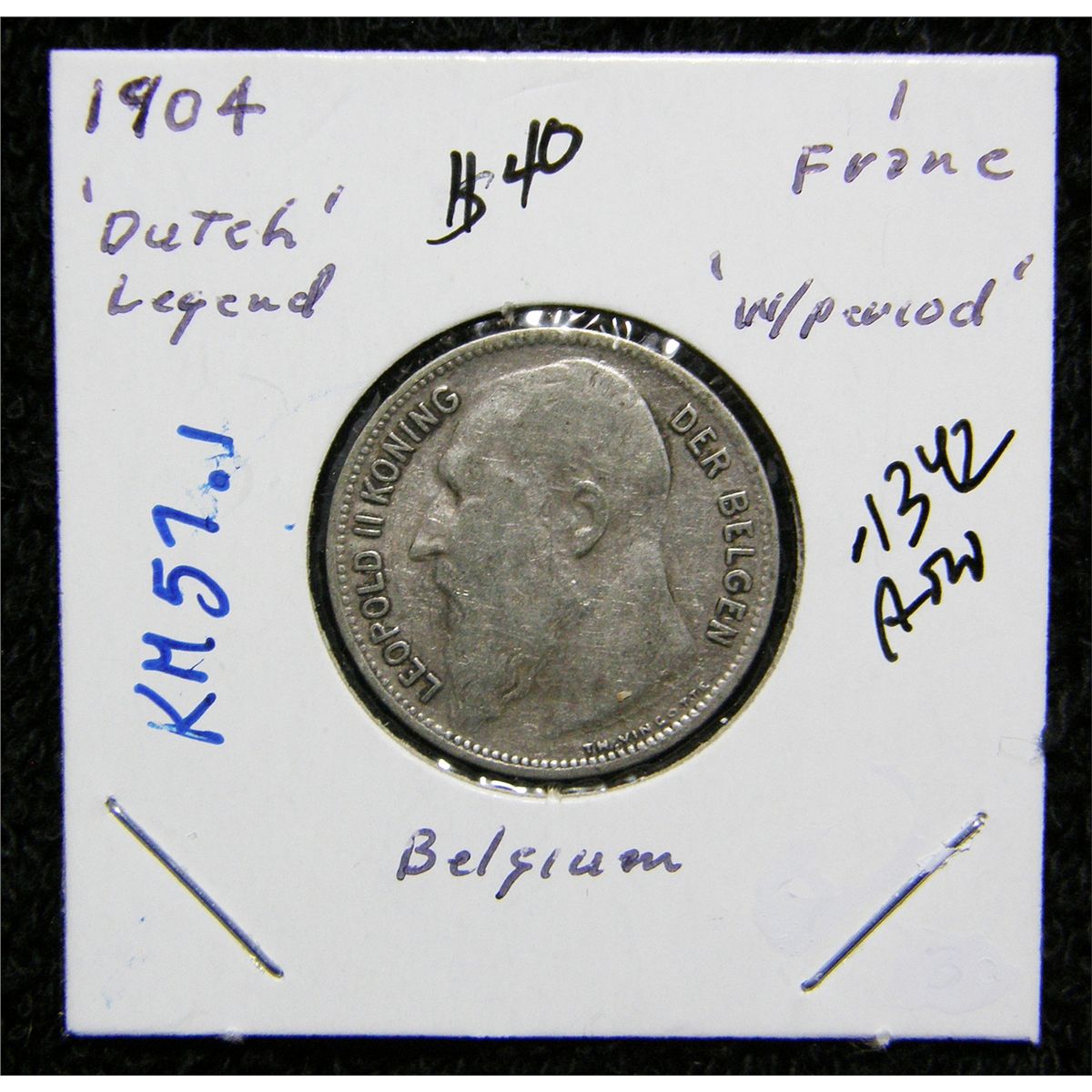1904 Key Date Dutch Legend with period Design type 1 Variety 1 KM 57.1 Obv: Bearded head of Leopold II, left, legend in Dutch Rev: Denomination above date within wreath