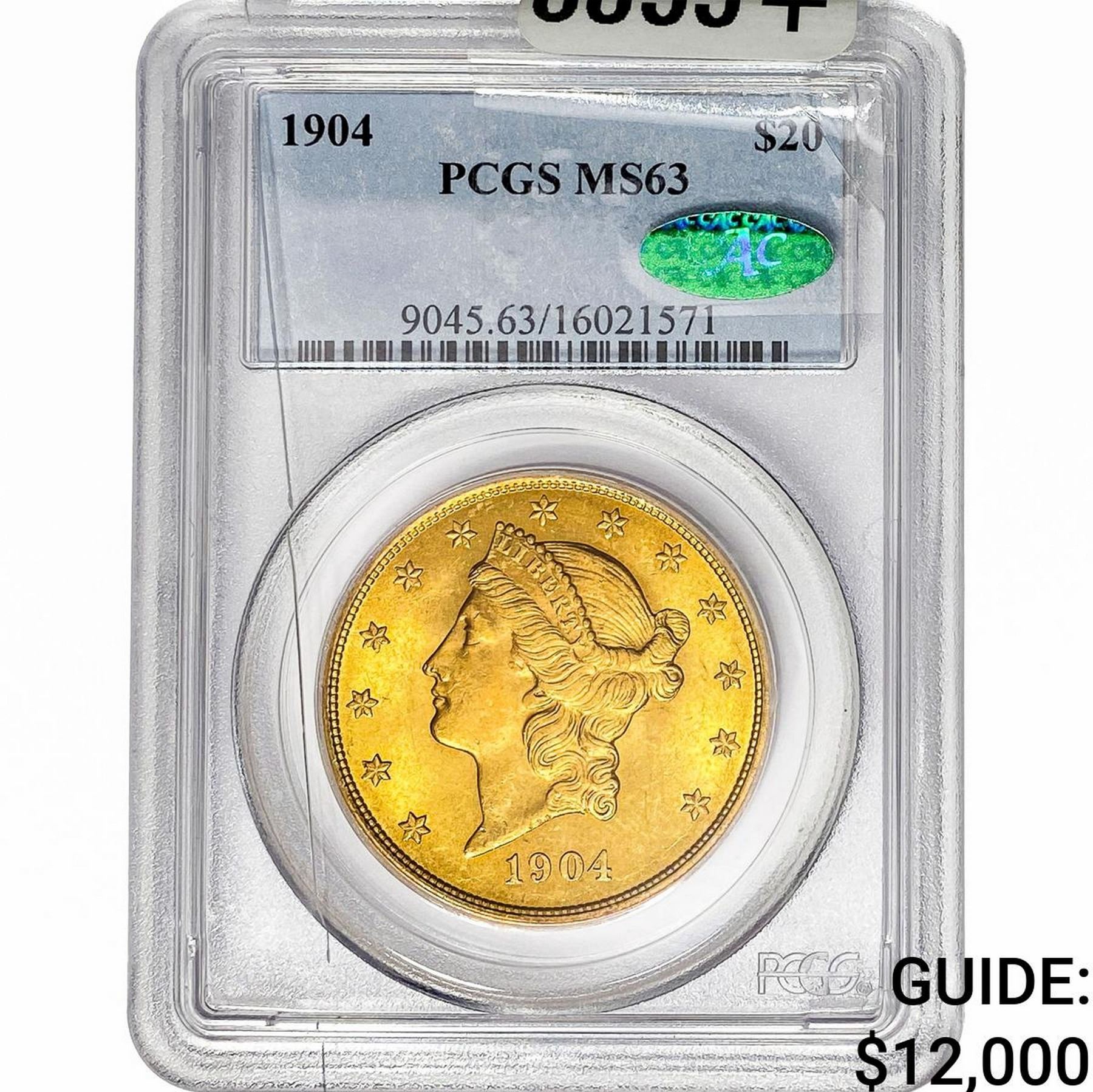 1904 CAC $20 Gold Double Eagle PCGS MS63