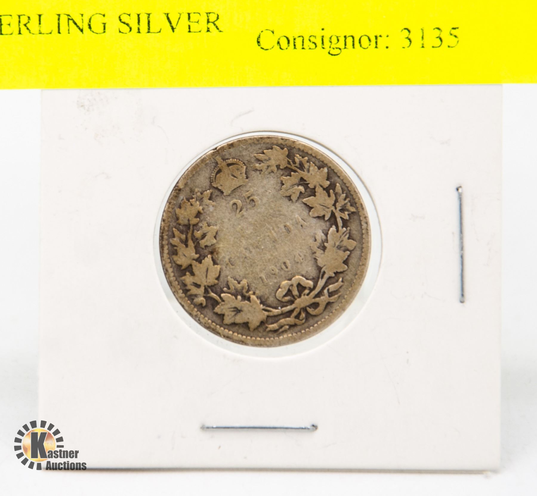 1904 CANADA 25 CENTS 92.5% STERLING SILVER