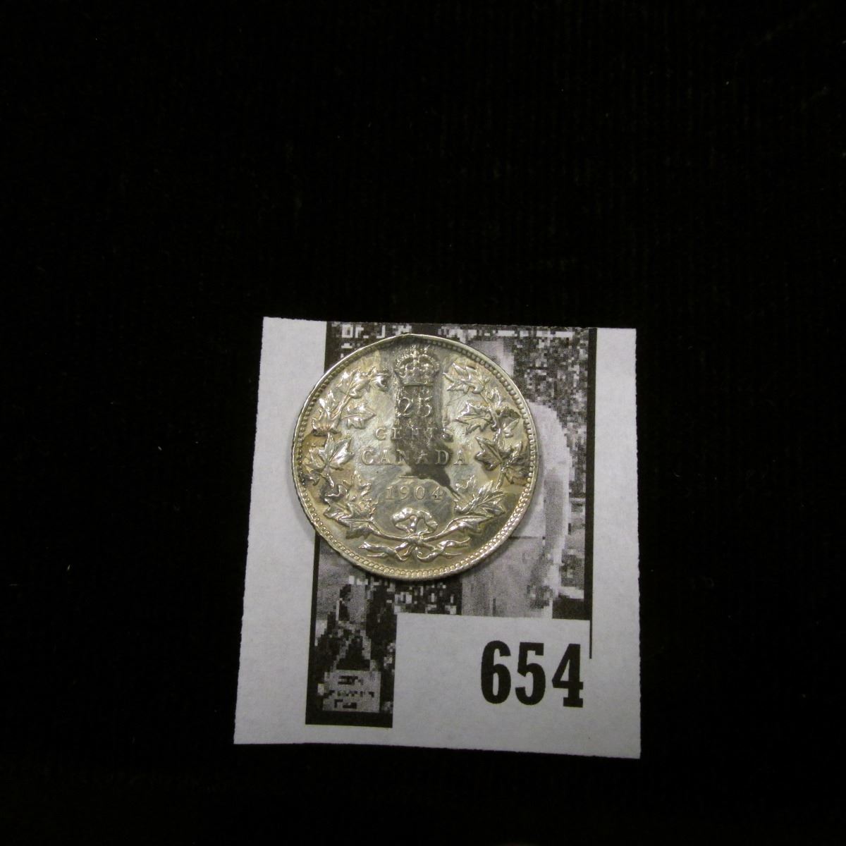 1904 Canada Quarter, Almost Uncirculated. Streak of black toning.