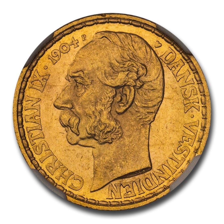1904 Danish West Indies Gold 4 Daler Christian IX MS-64 NGC