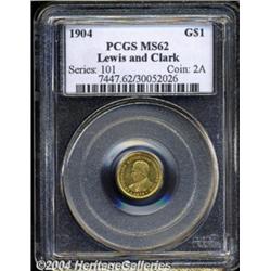 <table><tr><td><TABLE cellSpacing=0 cellPadding=0 width="100%" bgColor=#000000 border=0><TBODY> <TR><TD width="100%"><TABLE cellSpacing=1 cellPadding=3 width="100%" border=0><TBODY><TR><TD width="100%" bgColor=#79735c><FONT face=arial color=#ffffff size=3><B>Description</B> </FONT></TD></TR><TR><TD width="100%" bgColor=#ffffff><FONT face=arial size=2><B>1904 G$1 Lewis and Clark MS62 PCGS.</B></I> Bright green-gold surfaces with shimmering, semi-prooflike fields. Numerous light abrasions are scattered over each side, but none are large or individually important. </FONT></TD></TR></TBODY></TABLE></TD></TR></TBODY></TABLE><BR><A name=PricesRealized></A><TABLE cellSpacing=0 cellPadding=0 width="100%" bgColor=#000000 border=0><TBODY><TR><TD width="100%"><TABLE cellSpacing=1 cellPadding=3 width="100%" border=0><TBODY><TR><TD width="100%" bgColor=#79735c><A name=PR><FONT face=arial color=#ffffff size=3><B>Previous Prices from Heritage Auctions</B> </FONT></A></TD></TR><TR><TD bgColor=#f6f6ed><TABLE cellSpacing=0 cellPadding=0 width="100%" border=1><TBODY><TR><TD align=middle width="33%"><B>Date</B></TD><TD align=middle width="33%"><B>Service</B></TD><TD align=middle width="33%"><B>Price</B></TD></TR><TR bgColor=whitesmoke><TD width="33%"><B>01/12/2002</B></TD><TD width="33%">ANACS</TD><TD width="33%">$3,105.00</TD></TR><TR bgColor=whitesmoke><TD width="33%"><B>08/07/1999</B></TD><TD width="33%">PCGS</TD><TD width="33%">$724.50</TD></TR><TR bgColor=whitesmoke><TD width="33%"><B>03/02/1995</B></TD><TD width="33%">PCGS</TD><TD width="33%">$1,017.50</TD></TR><TR bgColor=whitesmoke><TD width="33%"><B>04/08/1994</B></TD><TD width="33%">PCGS</TD><TD width="33%">$1,320.00</TD></TR><TR bgColor=whitesmoke><TD width="33%"><B>02/05/1994</B></TD><TD width="33%">PCGS</TD><TD width="33%">$1,375.00</TD></TR><TR bgColor=whitesmoke><TD width="33%"><B>10/01/1993</B></TD><TD width="33%">PCGS</TD><TD width="33%">$962.50</TD></TR><TR bgColor=whitesmoke><TD width="33%"><B>01/06/1993</B></TD><TD width="33%">PCGS</TD><TD width="33%">$1,045.00</TD></TR></TBODY></TABLE></TD></TR><TR><TD bgColor=#ffffff><FONT face=arial size=1 ?>PLEASE NOTE: All prices realized reflect the final hammer price PLUS the buyer's premium in auctions that charge a buyer's premium. Each item has a notation at the top of the listing indicating whether that lot included a buyer's premium. Example: A item that sells with a final hammer price of $100 and a 20% buyer's premium will display with a price realized of $120. All information listed is intended to be as accurate as possible, but errors are possible. Please use this guide carefully and inform us of any inaccuracies. </FONT></TD></TR></TBODY></TABLE></TD></TR></TBODY></TABLE><BR><TABLE cellSpacing=0 cellPadding=0 width="100%" bgColor=#000000 border=0><TBODY><TR><TD width="100%"><TABLE cellSpacing=1 cellPadding=3 width="100%" border=0><TBODY><TR><TD width="100%" bgColor=#79735c colSpan=6><FONT face=arial color=#ffffff size=3><B>Price Guide*</B> </FONT></TD></TR><TR bgColor=#f6f6ed><TD align=middle><B>Grade</B> </TD><TD align=middle><B>Coin World<BR>(Trends)</B> </TD><TD align=middle><B>Numismedia<BR>Retail</B> </TD><TD align=middle><B>Numismedia<BR>Wholesale</B> </TD><TD align=middle><B>Coin<BR>Universe</B> </TD><TD align=middle><B>Heritage<BR>Value Index</B> </TD></TR><TR bgColor=#ffffff><TD align=middle>61</TD><TD align=right>---</TD><TD align=right>$920.00</TD><TD align=right>$765.00</TD><TD align=right>$900.00</TD><TD align=right>$803.06</TD></TR><TR style="FONT-WEIGHT: bold" bgColor=#cccfdd><TD align=middle>62</TD><TD align=right>---</TD><TD align=right>---</TD><TD align=right>$1,000.00</TD><TD align=right>$1,100.00</TD><TD align=right>$986.46</TD></TR><TR bgColor=#ffffff><TD align=middle>63</TD><TD align=right>$2,000.00</TD><TD align=right>---</TD><TD align=right>$1,675.00</TD><TD align=right>$1,800.00</TD><TD align=right>$1,415.63</TD></TR><TR bgColor=#ffffff><TD colSpan=6><FONT size=1>*All information listed is intended to be as accurate as possible, but errors are possible. No item may be returned or refused based on this information which is provided as a service to our customers. You should contact each pricing source directly to determine the accuracy of this information. </FONT></TD></TR></TBODY></TABLE></TD></TR></TBODY></TABLE><BR><TABLE cellSpacing=0 cellPadding=0 width="100%" bgColor=#000000 border=0><TBODY><TR><TD width="100%"><TABLE cellSpacing=1 cellPadding=3 width="100%" border=0><TBODY><TR><TD width="100%" bgColor=#79735c><FONT face=arial color=#ffffff size=3><B>Population Guide</B> </FONT></TD></TR><TR bgColor=#ffffff><TD align=middle><!-- Begin Output of Population Grid--><TABLE cellSpacing=0 cellPadding=0 width="100%" border=0><TBODY><TR><TD vAlign=center><TABLE cellSpacing=0 width="100%" border=1 cellsadding="3"><TBODY><TR><TD vAlign=center><TABLE cellSpacing=0 cellPadding=3 width="100%" border=1><TBODY><TR><TD vAlign=center align=middle bgColor=#f0f1e8 colSpan=2 <CENTER><FONT face=Arial size=2><B>PCGS Pop </B></FONT><CENTER></CENTER></TD><TD vAlign=center align=middle bgColor=#f0f1e8 colSpan=2><CENTER><FONT face=Arial size=2><B>NGC Pop</B></CENTER></FONT></TD></TR><TR><TD vAlign=center><FONT face=Arial size=2>(62)</FONT> </TD><TD vAlign=center align=right><FONT face=Arial size=2>227</FONT> </TD><TD vAlign=center><FONT face=Arial size=2>(62)</FONT> </TD><TD vAlign=center align=right><FONT face=Arial size=2>102</FONT> </TD></TR><TR><TD vAlign=center><FONT face=Arial size=2>(>62)</FONT> </TD><TD vAlign=center align=right><FONT face=Arial size=2>1218</FONT> </TD><TD vAlign=center><FONT face=Arial size=2>(>62)</FONT> </TD><TD vAlign=center align=right><FONT face=Arial size=2>695</FONT> </TD></TR></TBODY></TABLE></TD></TR></TBODY></TABLE></TD></TR></TBODY></TABLE><!-- End Output of Population Grid--></TD></TR></TBODY></TABLE></TD></TR></TBODY></TABLE><BR><TABLE cellSpacing=0 cellPadding=0 width="100%" bgColor=#000000 border=0><TBODY><TR> <font color='#000000'><span style='
