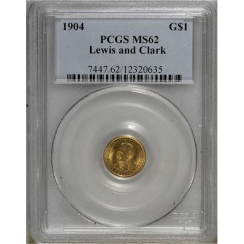 <B>1904 G$1 Lewis and Clark MS62 PCGS.</B></I> A full strike and brilliant yellow mint frost will captivate the collector, who will be unbothered by the few mostly hidden surface marks.<BR><BR><b>Shipping:</b> Coins & Currency (<a target="_blank" href="http://www.heritageauctions.com/common/shipping.php">view shipping information</a>)