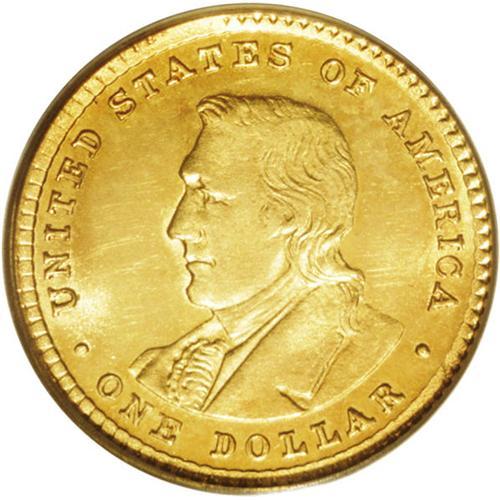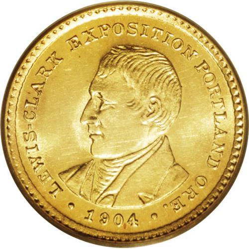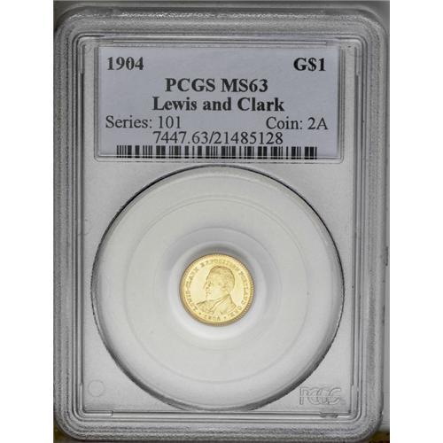<B>1904<G$1> Lewis and Clark MS63 PCGS.</B></I> Satiny, with bold cartwheel luster emanating from both sides. Very lightly toned in an attractive, yellow-gold color. Just a few scattered hairlines in the fields serve to limit the grade.