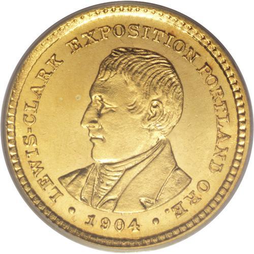 <B>1904 G$1 Lewis and Clark MS63 PCGS.</B></I> Sparkling mint luster and lovely lime-gold coloration cover the nicely preserved surfaces. A few trivial hairlines on each side keep this example from an even higher grade assessment, but noteworthy abrasions are nonexistent. Flashy and highly collectible.<BR><BR><b>Shipping:</b> Coins & Currency (<a target="_blank" href="http://www.heritageauctions.com/common/shipping.php">view shipping information</a>)