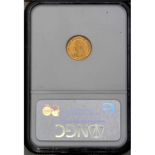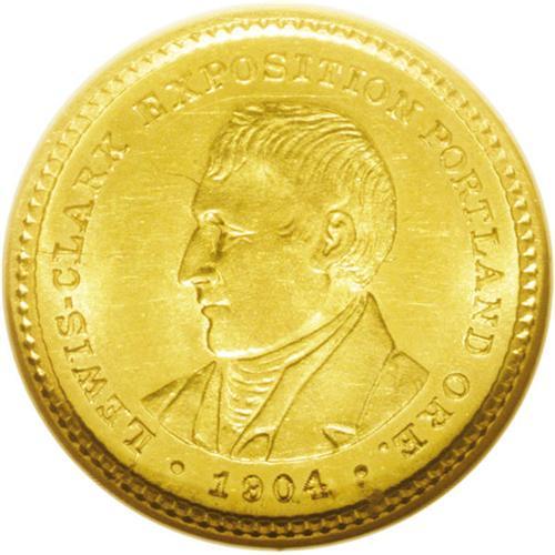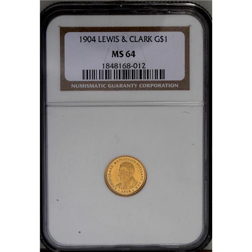 <B>1904<G$1> Lewis and Clark MS64 NGC.</B></I> Deeply set green-gold color gives way to orange-gold overtones depending on the angle of observation. There is modest brightness in the fields, but little in the way of distracting blemishes. A sharply struck survivor.