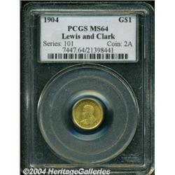 <table><tbody><tr><td><table> <TR><TD width="100%"><TABLE cellSpacing=1 cellPadding=3 width="100%" border=0><TBODY><TR><TD width="100%" bgColor=#79735c><FONT face=arial color=#ffffff size=3><B>Description</B> </FONT></TD></TR><TR><TD width="100%" bgColor=#ffffff><FONT face=arial size=2><B>1904 G$1 Lewis and Clark MS64 PCGS.</B></I> This Choice quality example is noticeably free of outwardly distracting abrasions. The satiny textured surfaces shimmer with modest brightness that is essentially undisturbed from rim to rim. A bold representative of this ever-popular gold Commemorative. </FONT></TD></TR></TBODY></TABLE></TD></TR></TBODY></TABLE><BR><A name=PricesRealized></A><TABLE cellSpacing=0 cellPadding=0 width="100%" bgColor=#000000 border=0><TBODY><TR><TD width="100%"><TABLE cellSpacing=1 cellPadding=3 width="100%" border=0><TBODY><TR><TD width="100%" bgColor=#79735c><A name=PR><FONT face=arial color=#ffffff size=3><B>Previous Prices from Heritage Auctions</B> </FONT></A></TD></TR><TR><TD bgColor=#f6f6ed><TABLE cellSpacing=0 cellPadding=0 width="100%" border=1><TBODY><TR><TD align=middle width="33%"><B>Date</B></TD><TD align=middle width="33%"><B>Service</B></TD><TD align=middle width="33%"><B>Price</B></TD></TR><TR bgColor=whitesmoke><TD width="33%"><B>08/05/2003</B></TD><TD width="33%">NGC</TD><TD width="33%">$3,220.00</TD></TR><TR bgColor=whitesmoke><TD width="33%"><B>01/07/2004</B></TD><TD width="33%">PCGS</TD><TD width="33%">$4,025.00</TD></TR><TR bgColor=whitesmoke><TD width="33%"><B>01/07/2004</B></TD><TD width="33%">PCGS</TD><TD width="33%">$4,025.00</TD></TR><TR bgColor=whitesmoke><TD width="33%"><B>03/23/2003</B></TD><TD width="33%">PCGS</TD><TD width="33%">$3,910.00</TD></TR><TR bgColor=whitesmoke><TD width="33%"><B>01/11/2003</B></TD><TD width="33%">NGC</TD><TD width="33%">$5,060.00</TD></TR><TR bgColor=whitesmoke><TD width="33%"><B>08/08/2001</B></TD><TD width="33%">NGC</TD><TD width="33%">$5,060.00</TD></TR><TR bgColor=whitesmoke><TD width="33%"><B>05/31/2001</B></TD><TD width="33%">PCGS</TD><TD width="33%">$3,450.00</TD></TR><TR bgColor=whitesmoke><TD width="33%"><B>06/10/2000</B></TD><TD width="33%">PCGS</TD><TD width="33%">$2,645.00</TD></TR><TR bgColor=whitesmoke><TD width="33%"><B>04/23/1999</B></TD><TD width="33%">PCGS</TD><TD width="33%">$2,990.00</TD></TR><TR bgColor=whitesmoke><TD width="33%"><B>08/07/1998</B></TD><TD width="33%">NGC</TD><TD width="33%">$2,990.00</TD></TR><TR bgColor=whitesmoke><TD width="33%"><B>01/10/1998</B></TD><TD width="33%">PCGS</TD><TD width="33%">$2,415.00</TD></TR><TR bgColor=whitesmoke><TD width="33%"><B>07/29/1997</B></TD><TD width="33%">PCGS</TD><TD width="33%">$2,860.00</TD></TR><TR bgColor=whitesmoke><TD width="33%"><B>05/29/1996</B></TD><TD width="33%">PCGS</TD><TD width="33%">$3,080.00</TD></TR><TR bgColor=whitesmoke><TD width="33%"><B>07/26/1994</B></TD><TD width="33%">PCGS</TD><TD width="33%">$3,190.00</TD></TR><TR bgColor=whitesmoke><TD width="33%"><B>07/31/1993</B></TD><TD width="33%">PCGS</TD><TD width="33%">$3,960.00</TD></TR><TR bgColor=whitesmoke><TD width="33%"><B>03/12/1993</B></TD><TD width="33%">PCGS</TD><TD width="33%">$3,740.00</TD></TR></TBODY></TABLE></TD></TR><TR><TD bgColor=#ffffff><FONT face=arial size=1 ?>PLEASE NOTE: All prices realized reflect the final hammer price PLUS the buyer's premium in auctions that charge a buyer's premium. Each item has a notation at the top of the listing indicating whether that lot included a buyer's premium. Example: A item that sells with a final hammer price of $100 and a 20% buyer's premium will display with a price realized of $120. All information listed is intended to be as accurate as possible, but errors are possible. Please use this guide carefully and inform us of any inaccuracies. </FONT></TD></TR></TBODY></TABLE></TD></TR></TBODY></TABLE><BR><TABLE cellSpacing=0 cellPadding=0 width="100%" bgColor=#000000 border=0><TBODY><TR><TD width="100%"><TABLE cellSpacing=1 cellPadding=3 width="100%" border=0><TBODY><TR><TD width="100%" bgColor=#79735c colSpan=6><FONT face=arial color=#ffffff size=3><B>Price Guide*</B> </FONT></TD></TR><TR bgColor=#f6f6ed><TD align=middle><B>Grade</B> </TD><TD align=middle><B>Coin World<BR>(Trends)</B> </TD><TD align=middle><B>Numismedia<BR>Retail</B> </TD><TD align=middle><B>Numismedia<BR>Wholesale</B> </TD><TD align=middle><B>Coin<BR>Universe</B> </TD><TD align=middle><B>Heritage<BR>Value Index</B> </TD></TR><TR bgColor=#ffffff><TD align=middle>63</TD><TD align=right>$2,000.00</TD><TD align=right>---</TD><TD align=right>$1,675.00</TD><TD align=right>$1,800.00</TD><TD align=right>$1,515.63</TD></TR><TR style="FONT-WEIGHT: bold" bgColor=#cccfdd><TD align=middle>64</TD><TD align=right>$5,000.00</TD><TD align=right>---</TD><TD align=right>$3,100.00</TD><TD align=right>$4,500.00</TD><TD align=right>$3,392.50</TD></TR><TR bgColor=#ffffff><TD align=middle>65</TD><TD align=right>$10,000.00</TD><TD align=right>---</TD><TD align=right>$6,000.00</TD><TD align=right>$8,000.00</TD><TD align=right>$7,023.75</TD></TR><TR bgColor=#ffffff><TD colSpan=6><FONT size=1>*All information listed is intended to be as accurate as possible, but errors are possible. No item may be returned or refused based on this information which is provided as a service to our customers. You should contact each pricing source directly to determine the accuracy of this information. </FONT></TD></TR></TBODY></TABLE></TD></TR></TBODY></TABLE><BR><TABLE cellSpacing=0 cellPadding=0 width="100%" bgColor=#000000 border=0><TBODY><TR><TD width="100%"><TABLE cellSpacing=1 cellPadding=3 width="100%" border=0><TBODY><TR><TD width="100%" bgColor=#79735c><FONT face=arial color=#ffffff size=3><B>Population Guide</B> </FONT></TD></TR><TR bgColor=#ffffff><TD align=middle><!-- Begin Output of Population Grid--><TABLE cellSpacing=0 cellPadding=0 width="100%" border=0><TBODY><TR><TD vAlign=center><TABLE cellSpacing=0 width="100%" border=1 cellsadding="3"><TBODY><TR><TD vAlign=center><TABLE cellSpacing=0 ce
