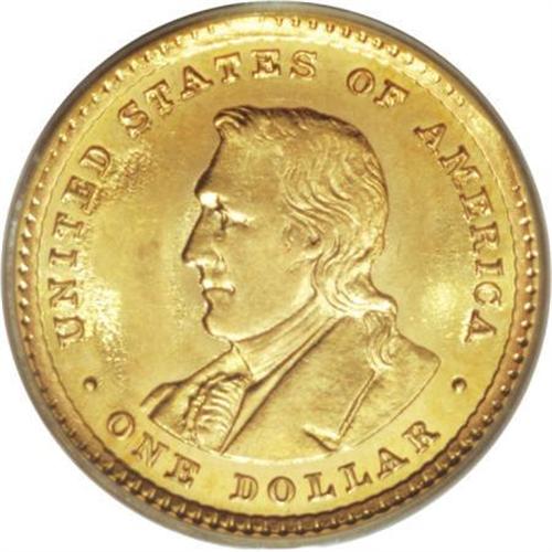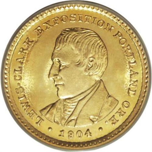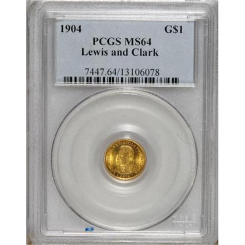 <B>1904 G$1 Lewis and Clark MS64 PCGS.</B></I> The luster of this near-Gem representative is more vibrant than usual, particularly near the legends, which have uncommonly strong flash. The yellow-gold surfaces, varied by glints of orange, have few flaws of any note, and the overall detail on the portraits is pleasing. Significant die erosion noted at the margins suggests that the coin was minted late in the production run.<BR><BR><b>Shipping:</b> Coins & Currency (<a target="_blank" href="http://www.heritageauctions.com/common/shipping.php">view shipping information</a>)