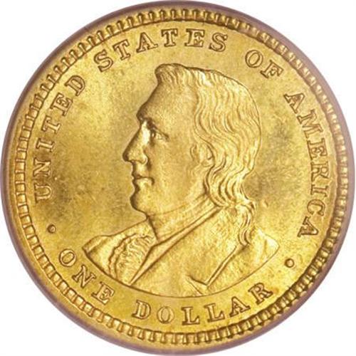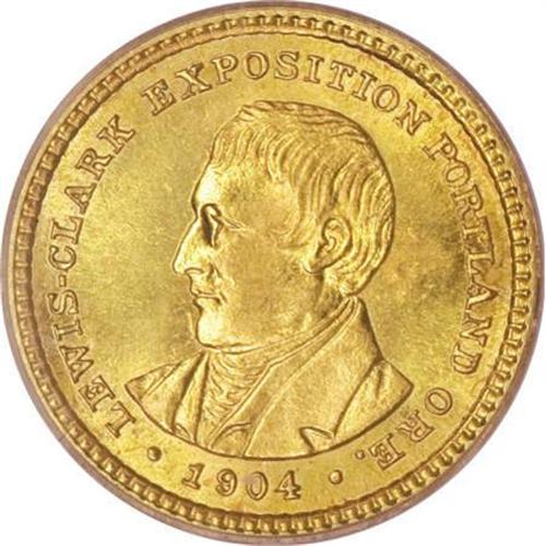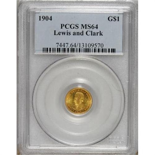 <B>1904 G$1 Lewis and Clark MS64 PCGS.</B></I> The Lewis and Clark gold coins of 1904-05 have their recent counterparts in the 2004-05 Jefferson nickels, celebrating Thomas Jefferson, the Louisiana Purchase, and the Lewis and Clark Expedition. This pretty orange-gold piece shows a few minute field imperfections, which are as produced.<BR><BR><b>Shipping:</b> Coins & Currency (<a target="_blank" href="http://www.heritageauctions.com/common/shipping.php">view shipping information</a>)