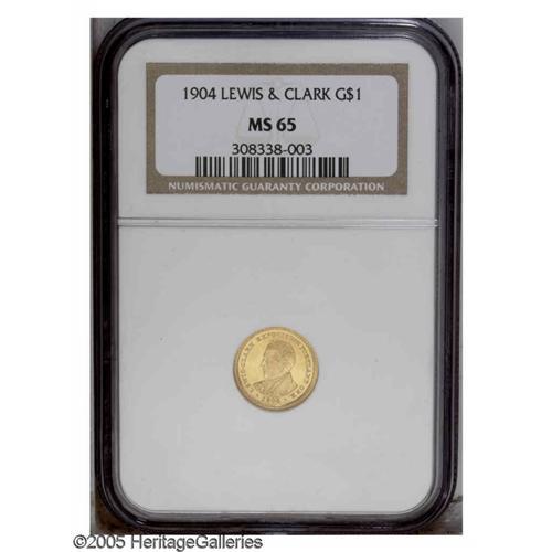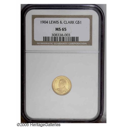 <B>1904<G$1> Lewis and Clark MS65 NGC.</B></I> An outstanding Gem example with exceptional eye appeal. Sharply struck with pristine surfaces and satiny yellow luster.