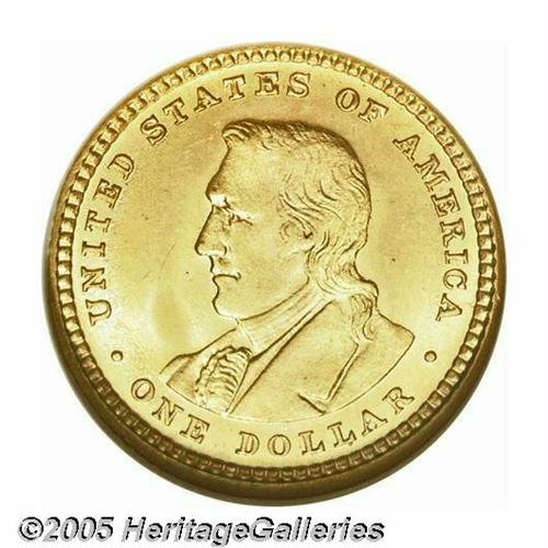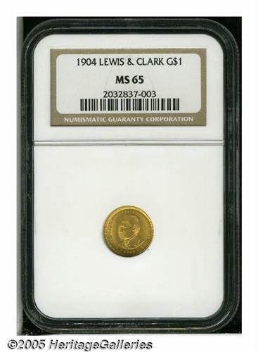 <B>1904<G$1> Lewis and Clark MS65 NGC.</B></I> Exceptionally well preserved for this desirable early commemorative, made even more relevant by the current Westward Journey Nickel series. Both sides display a pleasing, wholly original appearance, with ample frostiness and glimpses of prooflike luster on the obverse.<BR><I>From the Dr. Kurt Peters Collection.</B></I> From the Dr. Kurt Peters Collection.