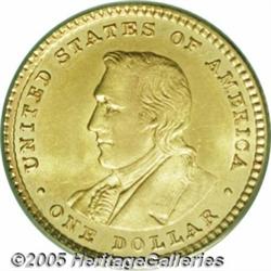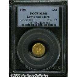 <B>1904 G$1 Lewis and Clark MS65 PCGS.</B></I> A significant coin for the commemorative specialist, the '04 L&C is second only in rarity its 1905 counterpart. The surfaces are seemingly unaffected by any noticeable post-striking impairments and the fields have taken on a lovely reddish color that turns to a pale olive at the rims.