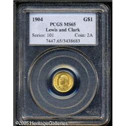 <B>1904 G$1 Lewis and Clark MS65 PCGS.</B></I> Bright and lustrous, with the usual textured luster in the fields and well struck devices. This early commemorative issue is always in strong demand, and few survived in Gem condition as seen here. A great coin for the collector to put away. Lot:8642