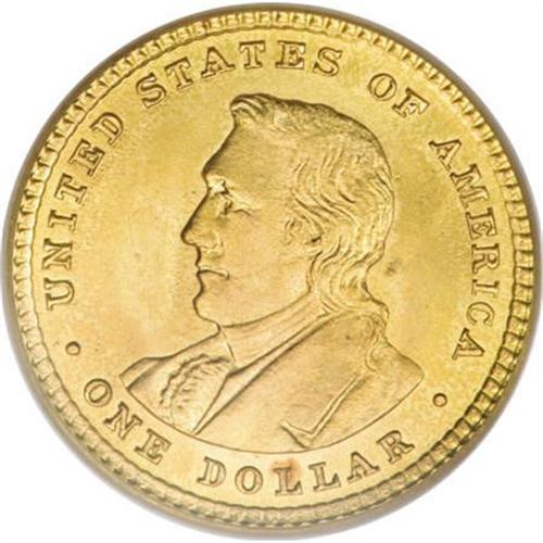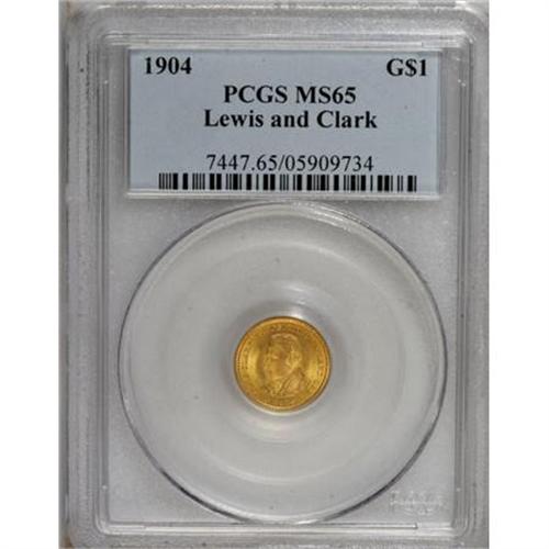 <B>1904 G$1 Lewis and Clark MS65 PCGS.</B></I> The net production of 1904 Lewis and Clark dollars, just 10,025 examples, is a minuscule figure compared to the authorized mintage of 250,000 pieces. This luminous butter-yellow representative shows just a hint of frost on the devices, and the overall level of preservation is high. Garrett and Guth (2006) describe the issue as "one of the rarer issues of the series," particularly in Gem and better condition. Overall, a wonderful example.<BR><BR><b>Shipping:</b> Coins & Currency (<a target="_blank" href="http://www.heritageauctions.com/common/shipping.php">view shipping information</a>)