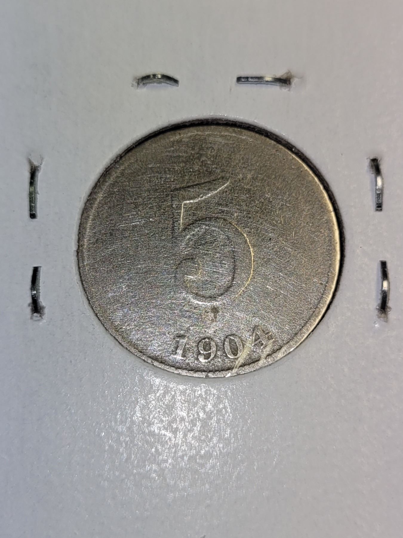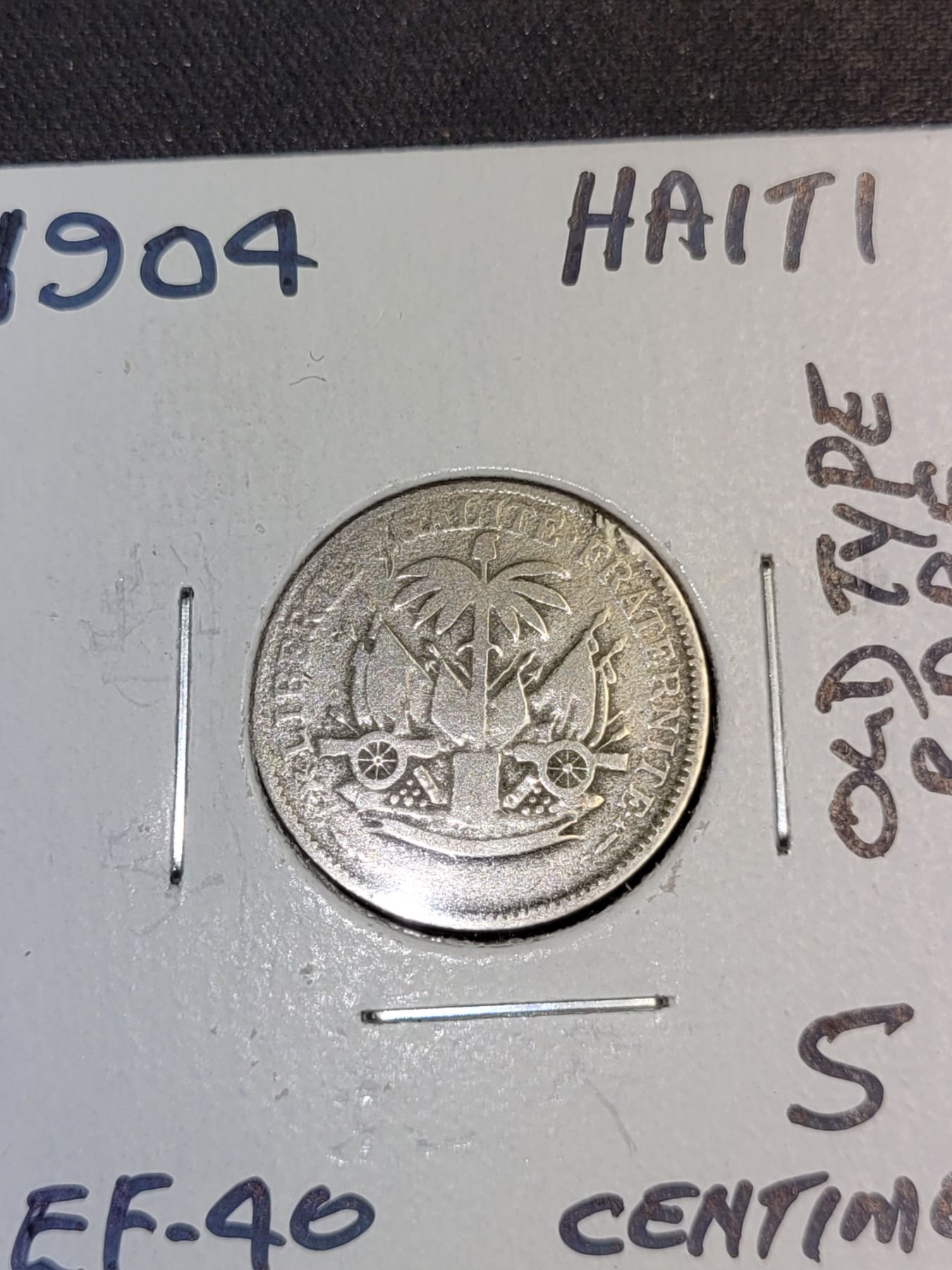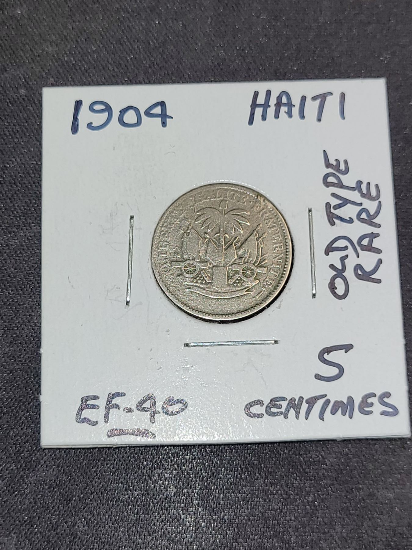 1904 Haiti Coat of Arms 5 Centimes Coin EF-40 old type rare with the number 5 & not the effigy on the obverse
