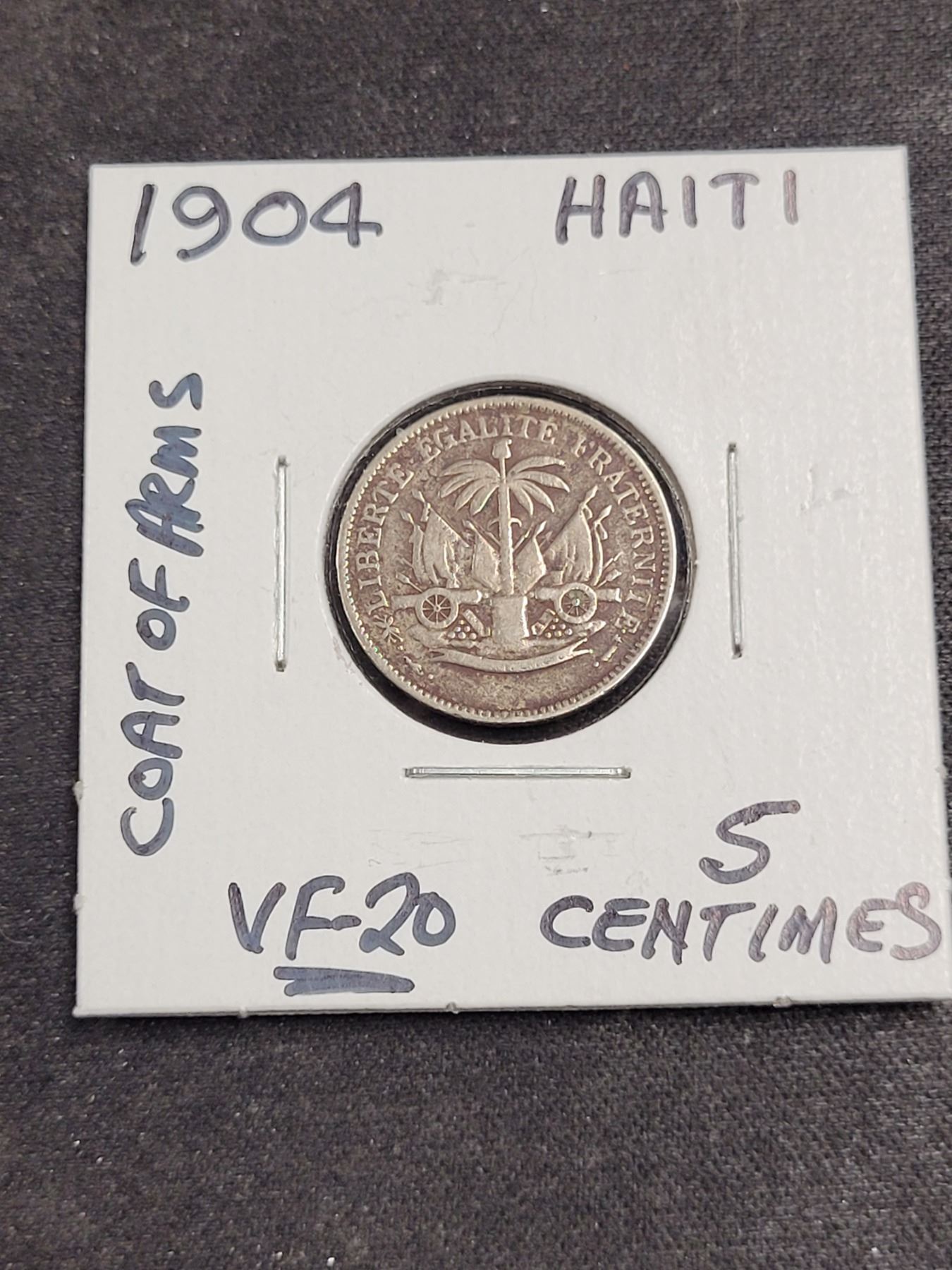 1904 Haiti Coat of Arms 5 Centimes Coin VF-20