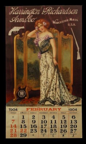 Very rare. Only two known examples of this piece. The true Cadillac of gun advertising. Excellent condition with bright, vivid color. February through December 1904. 15" x 25-1/2"