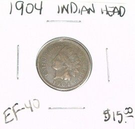 1904 INDIAN HEAD RED BOOK VALUE IS $15.00 *RARE EXTRA FINE-40 HIGH GRADE*!! ***Coin, Currency & All Items Listed in this auction - Grades, Conditions and Values are not Safe Deposit Coins LLC Responsibilty. Grades, Condition and Values are determined by Consigner(s) & Buyers ONLY***