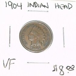 1904 INDIAN HEAD RED BOOK VALUE IS $8.00 *RARE VERY FINE GRADE*!! ***Coin, Currency & All Items Listed in this auction - Grades, Conditions and Values are not Safe Deposit Coins LLC Responsibilty. Grades, Condition and Values are determined by Consigner(s) & Buyers ONLY***