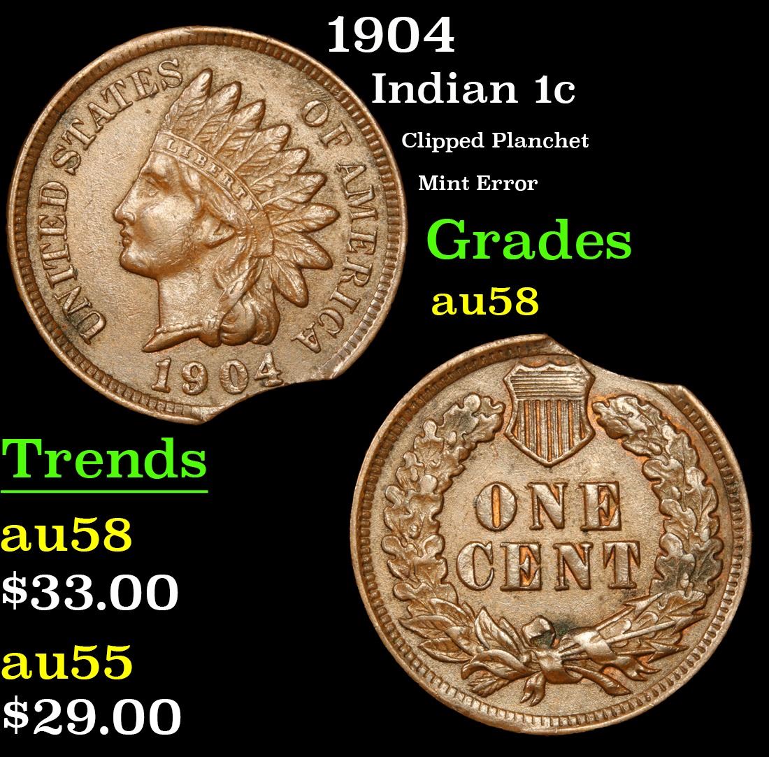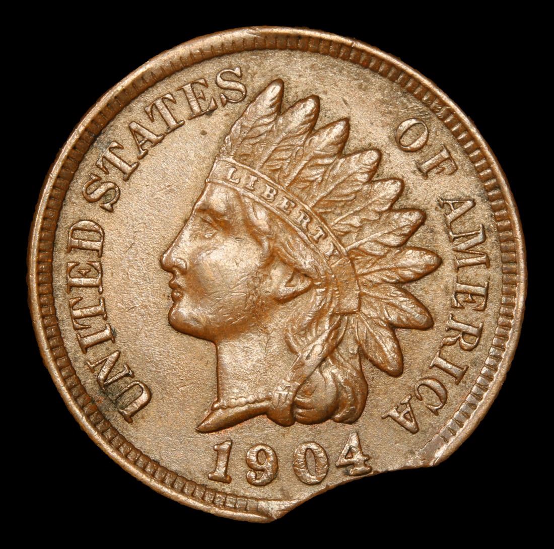 1904 Clipped Planchet Mint Error Indian Cent 1c Grades Choice AU/BU Slider.