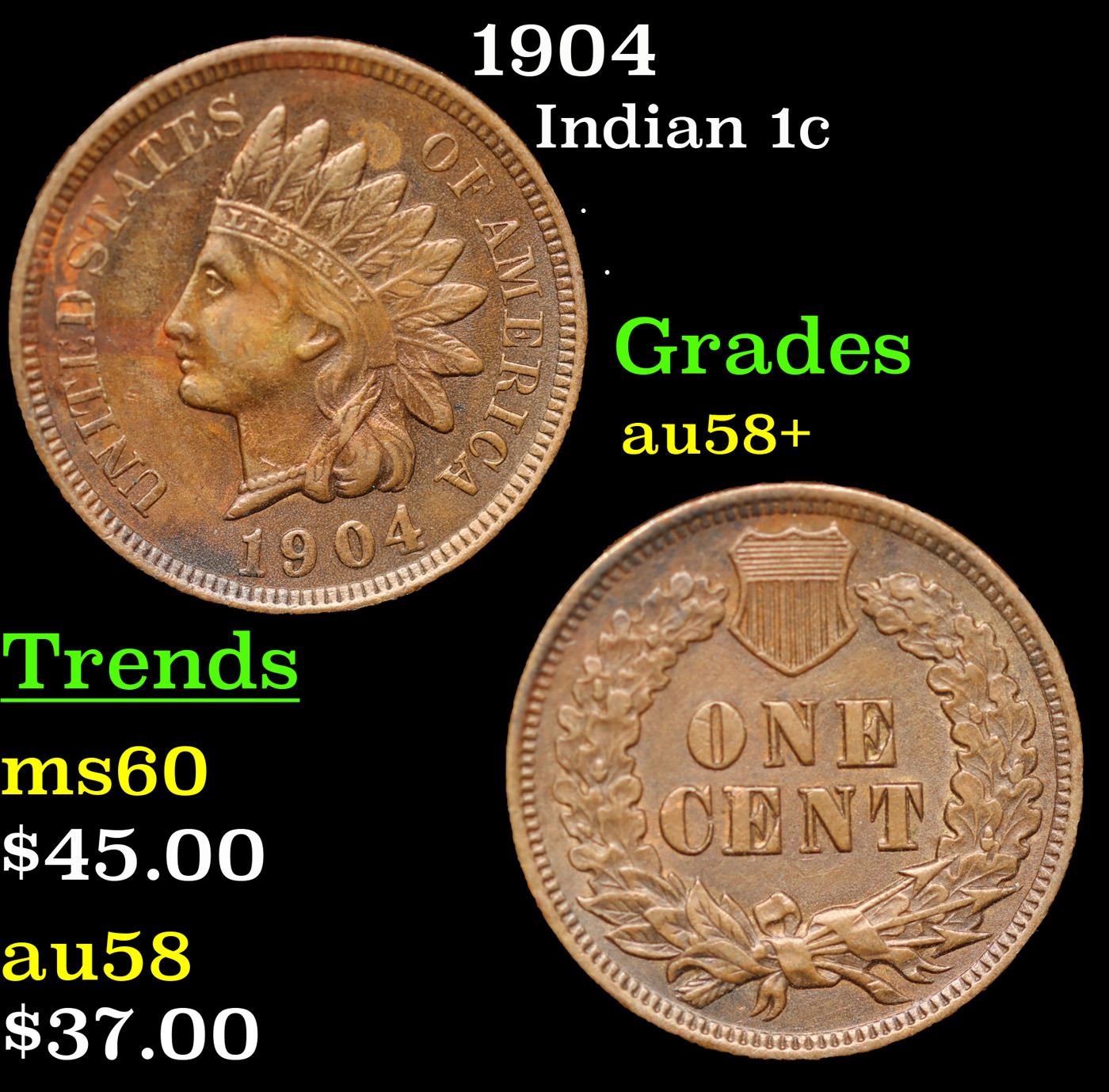 1904 Indian Cent 1c Grades Choice AU/BU Slider+.
