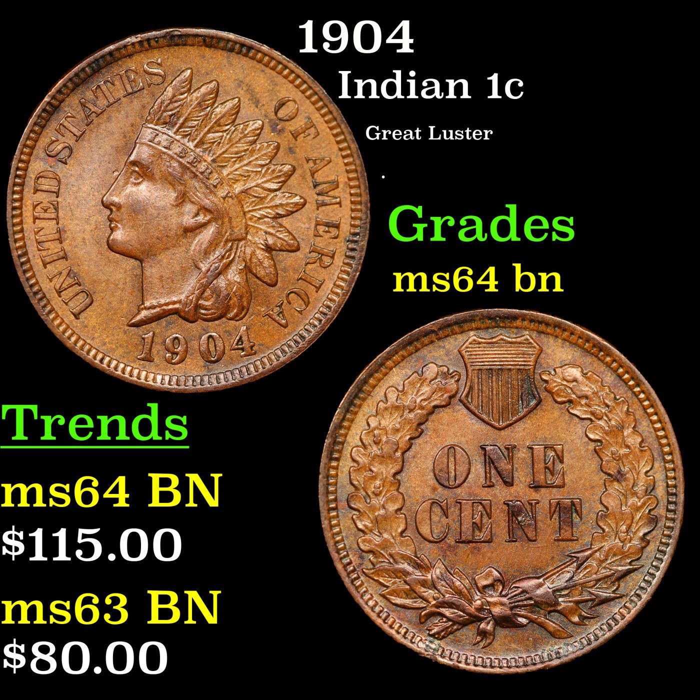 1904 Indian Cent 1c Grades Choice Unc BN.