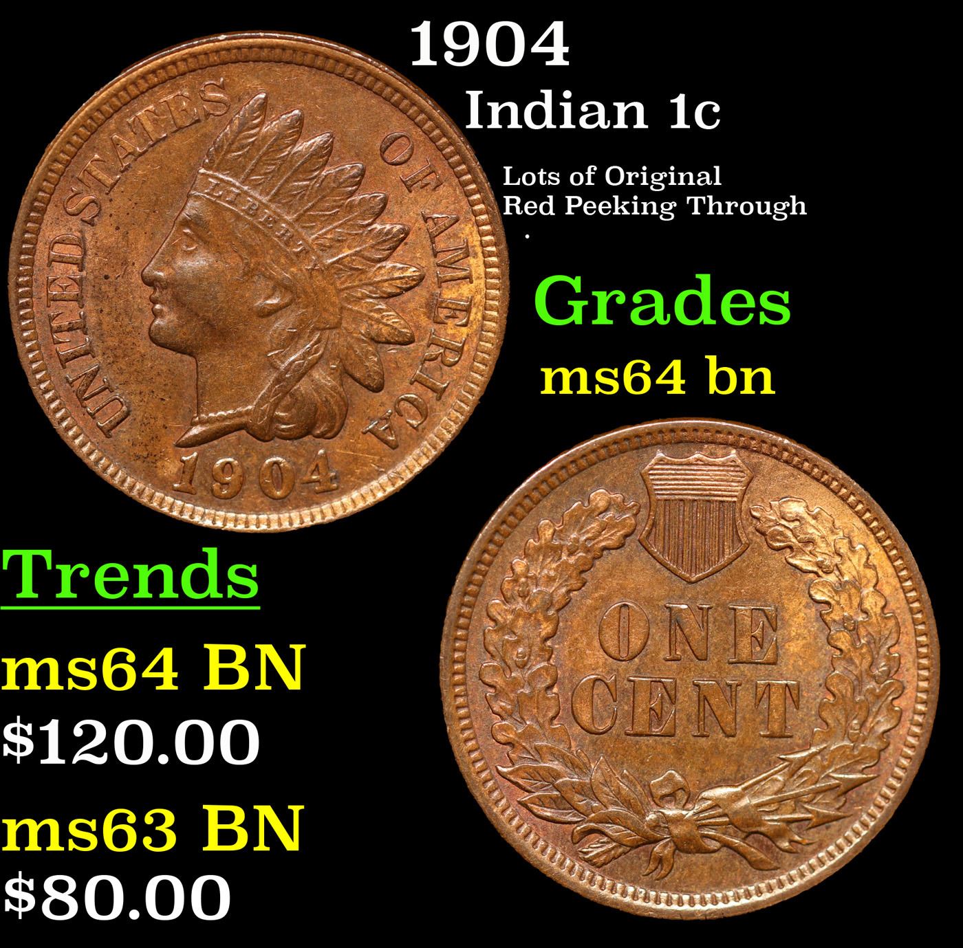 1904 Indian Cent 1c Grades Choice Unc BN.