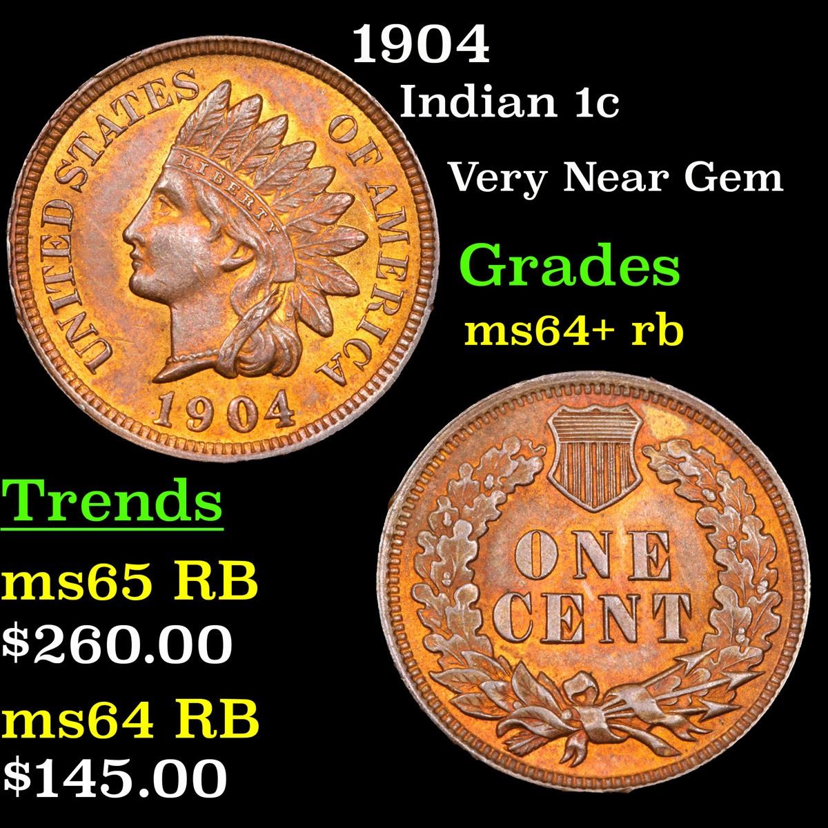 1904 . Very Near Gem Indian Cent 1c Grades Choice+ Unc RB.