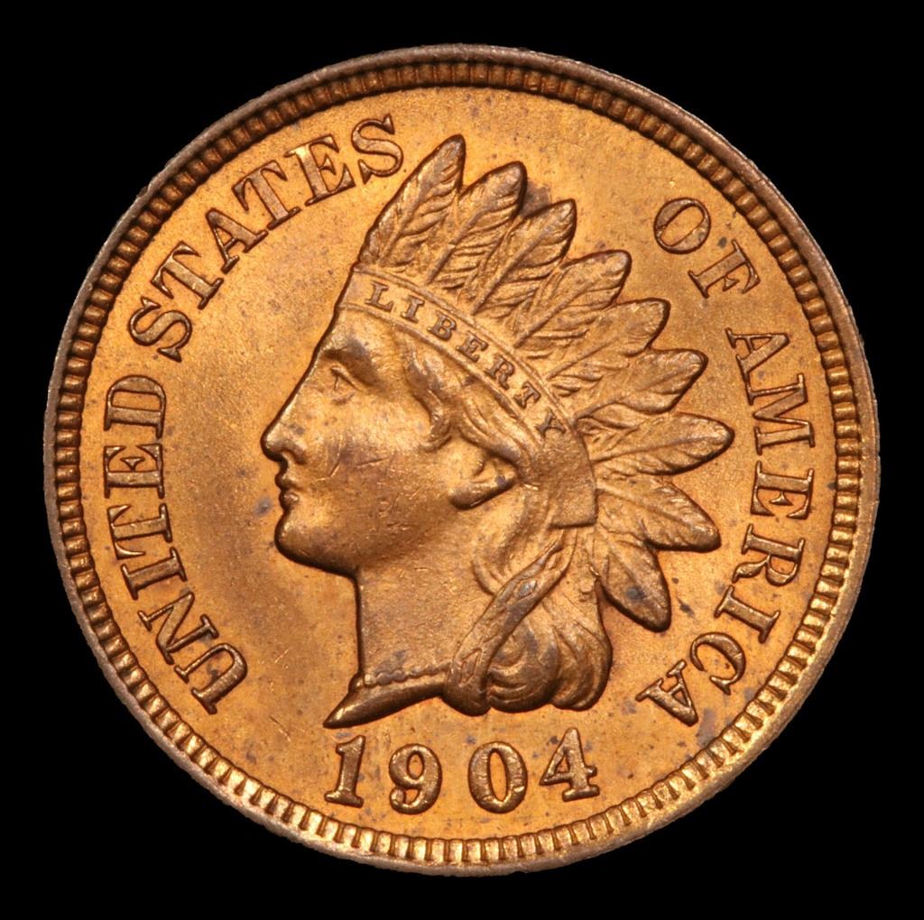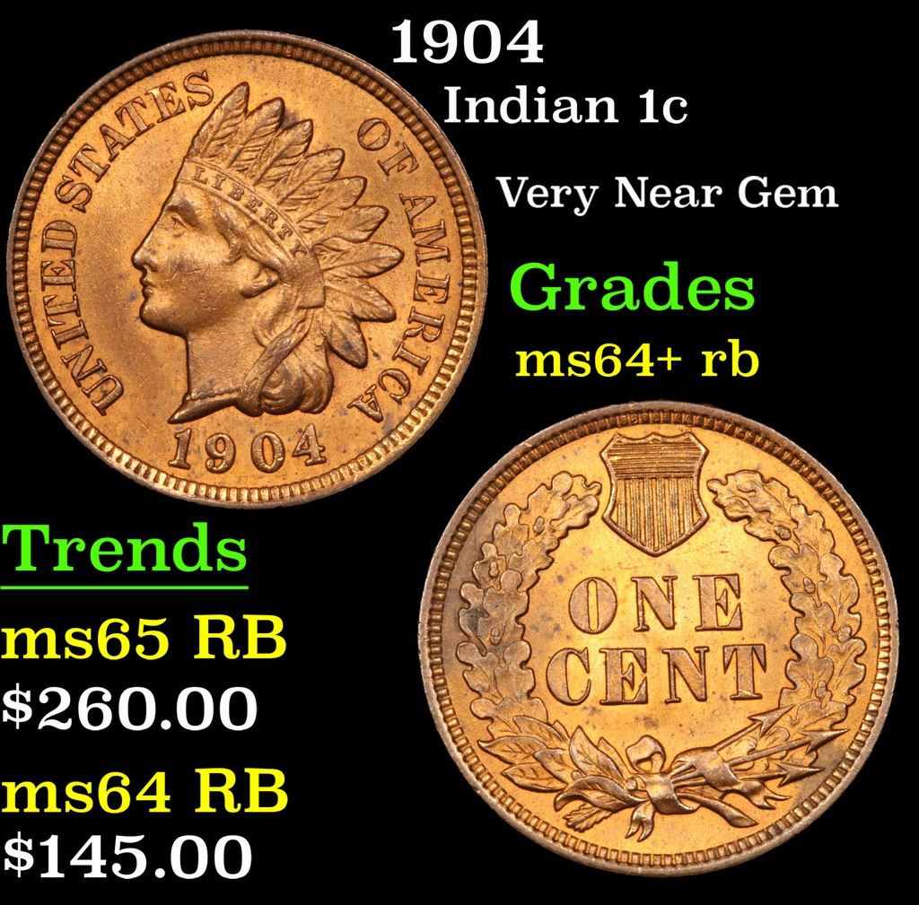 1904 . Very Near Gem Indian Cent 1c Grades Choice+ Unc RB.