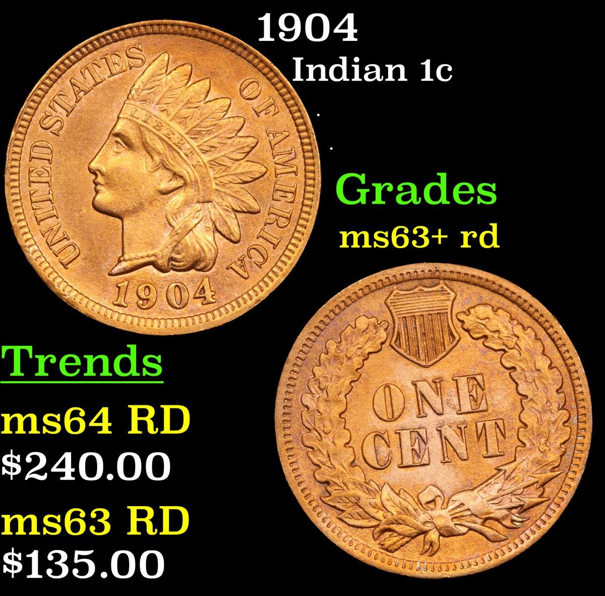 1904 . . Indian Cent 1c Grades Select+ Unc RD.
