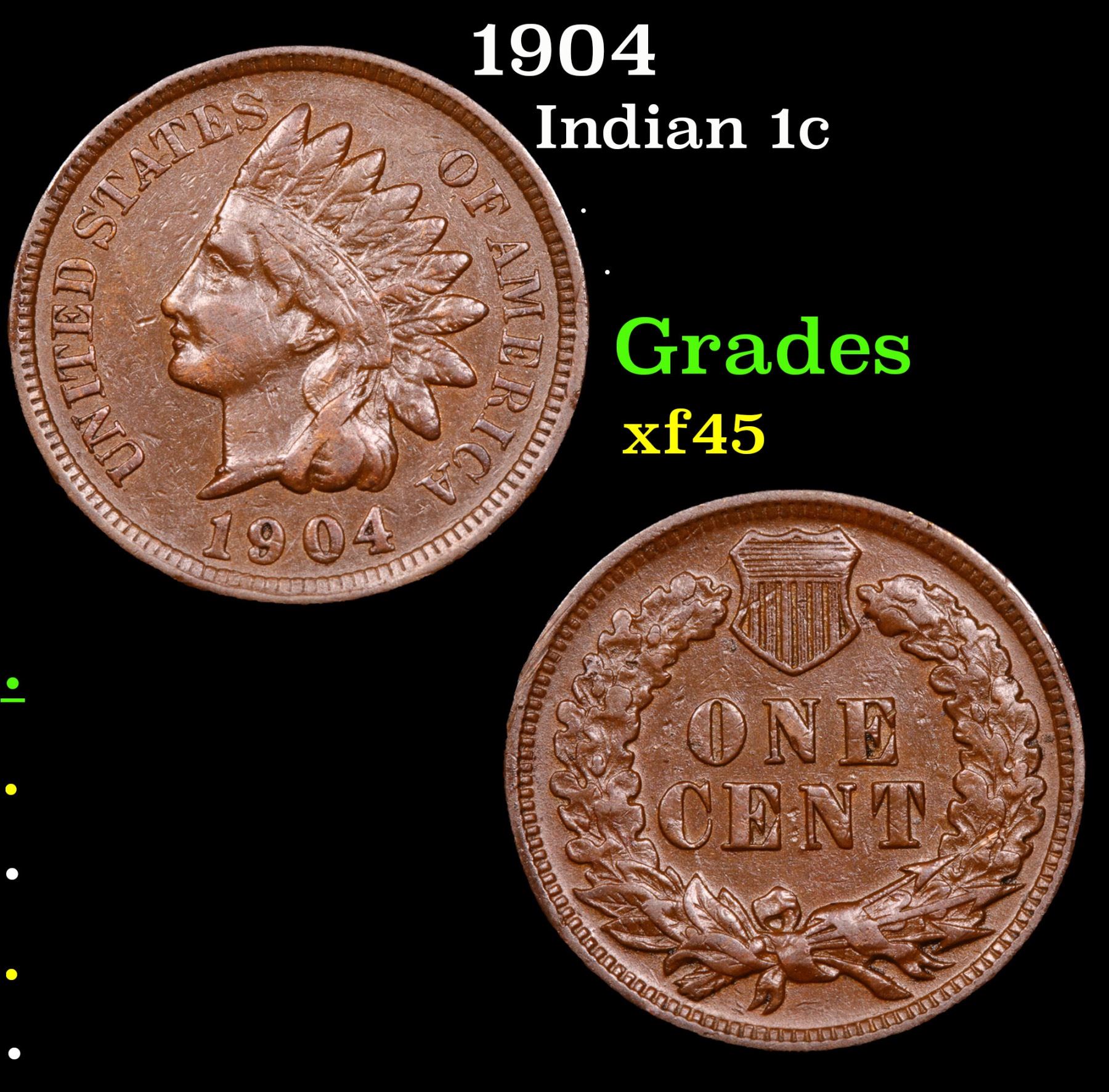 1904 . . Indian Cent 1c Grades xf+.