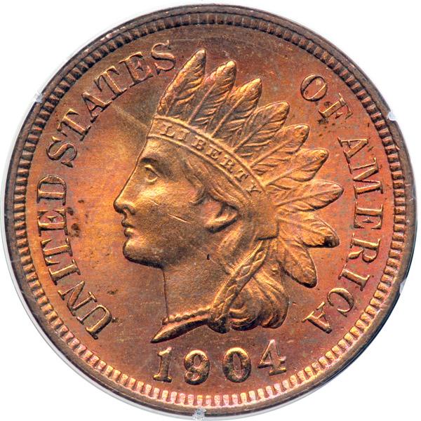 1904 Indian Head Cent. PCGS graded MS-64 Red. Housed in a First Generation Holder. Lovely red colors (PCGS # 2219) .