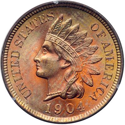 1904 Indian Head Cent. PCGS graded MS-64 Red PQ. Housed in a First Generation Holder. Bright mint color throughout (PCGS # 2219).