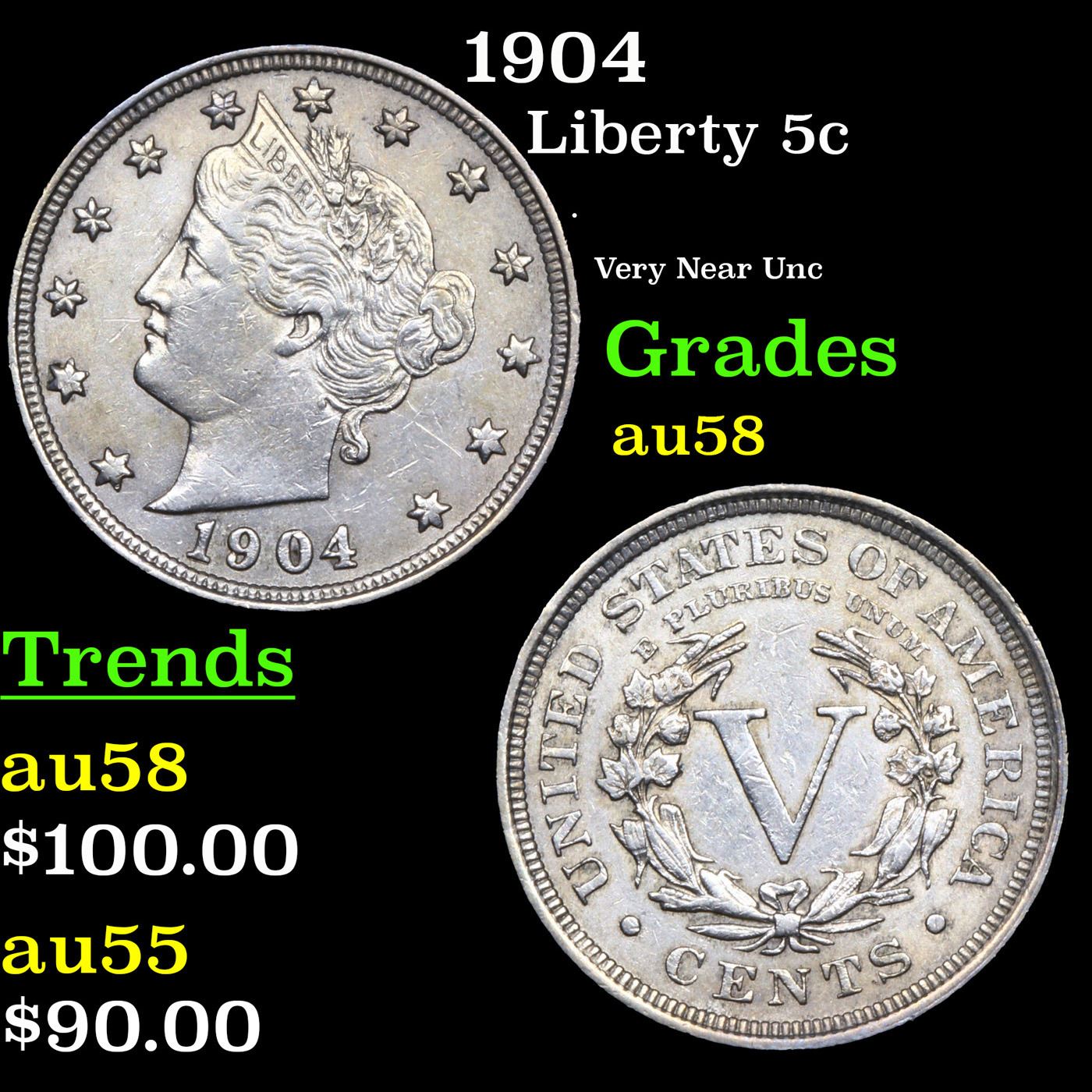 1904 Liberty Nickel 5c Grades Choice AU/BU Slider.