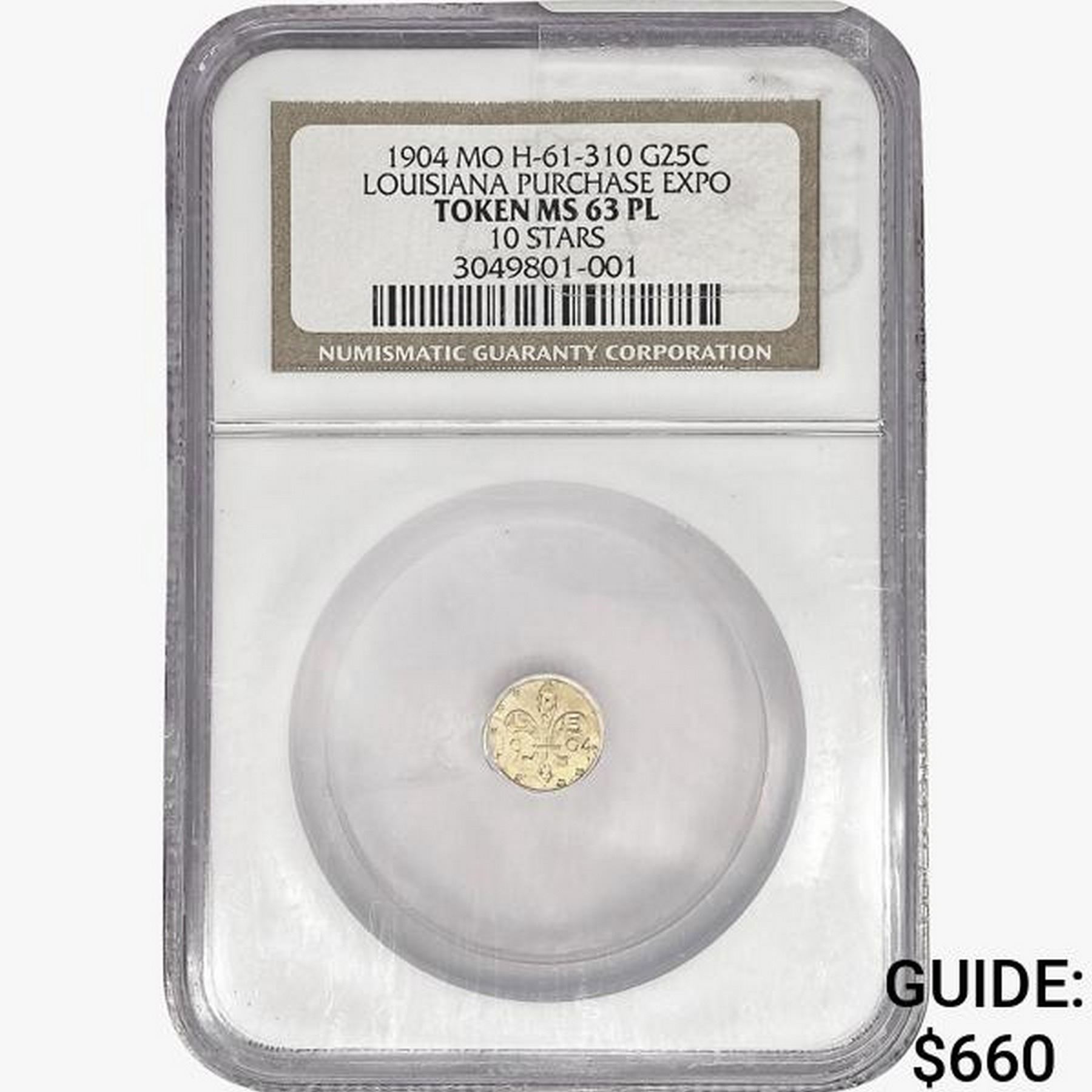 1904 MO Token H-61-310 G25C NGC MS63 PL 10 Stars